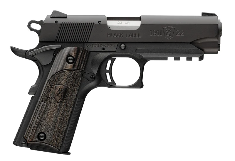 Browning, MFG# 051817490, UPC: 023614042419, UOM: Each, 1911-22 Black Label Compact, .22LR, 3.63″ Barrel, 3 Dot Sights, Black Label Laminate Grips, Black, 10-rd, BROW, BROWHG10, BROWHGALL, HG10, HGALL