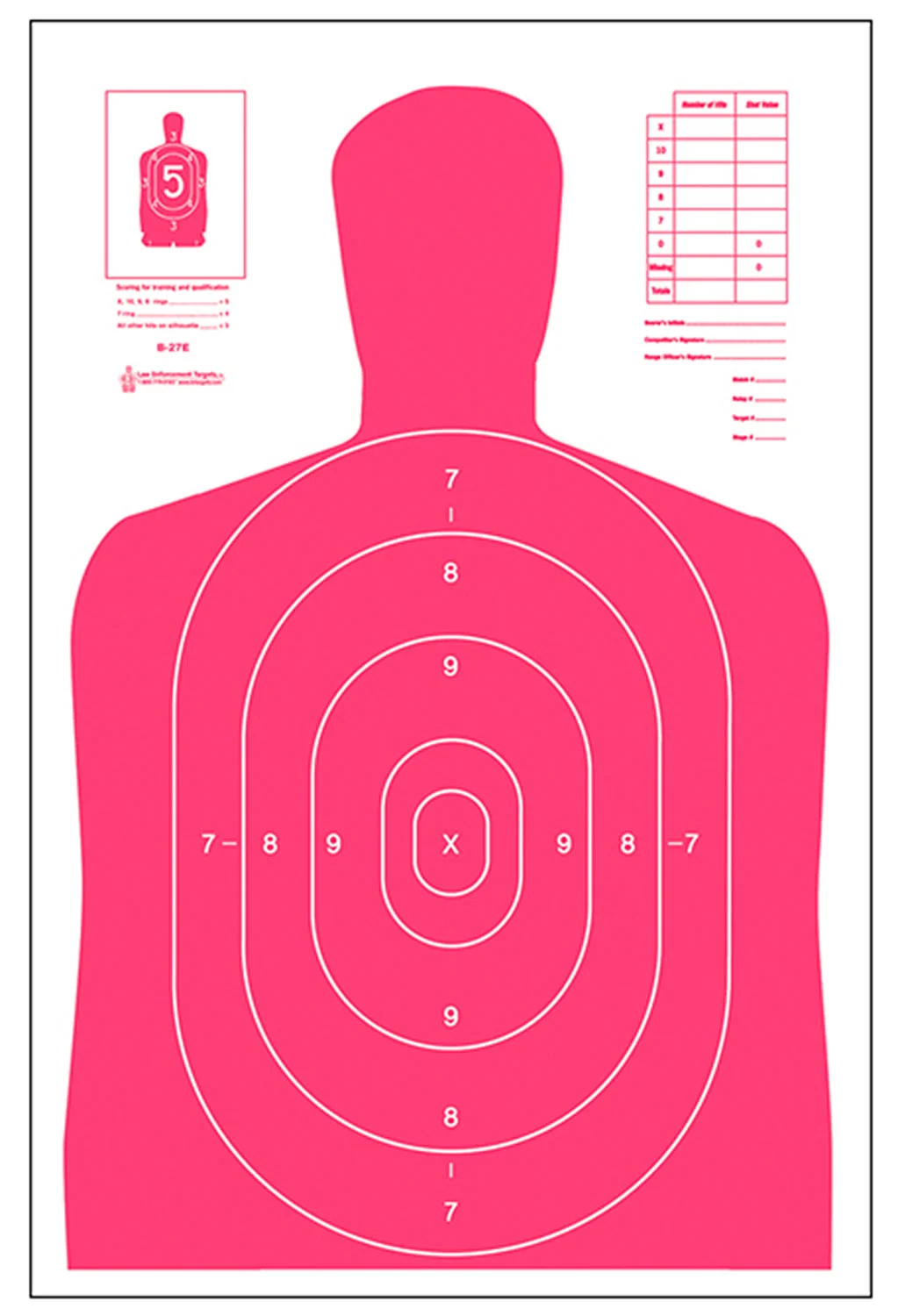 B-27E-RD High visibility fluorescent red/white target. Great for indoor ranges. Size: 23″ x 35″.