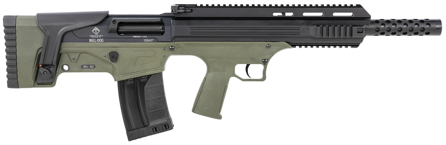 ATI ATIG12BDG Bulldog 12 Gauge Semi-Auto 3″ 5+1 18.50″ Black Steel Barrel, Black Aluminum Receiver, Picatinny Rail, Green Fixed Bullpup Stoc & Grip