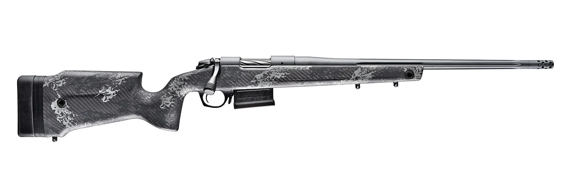 Bergara Rifles B14LM751 B-14 Crest 300 Win Mag 5+1 22″ Fluted/Threaded, Sniper Gray Cerakote Barrel/Rec, Monte Carlo Carbon Fiber Stock with Black & Gray Splatter, Omni Muzzle Brake