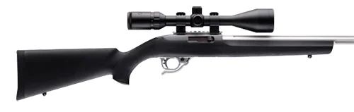 Hogue’s revolutionary O.M.? series stocks are made similar to the popular rubber grips. Constructed by molding a super strong rigid fiberglass reinforced stock that precisely fits the rifle action. Then the stock is OverMolded with the same rubber as on Hogue grips that results in a comfortable non slip super smooth attractive finish. These stocks feature a sleek straight comb palm swells and a “varminter” style forend which is treated with a unique “Cobblestone” texture. All centerfire rifle stocks are equipped with a recoil pad. All centerfire bolt action models come standard with aluminum pillar bedding in the stock.