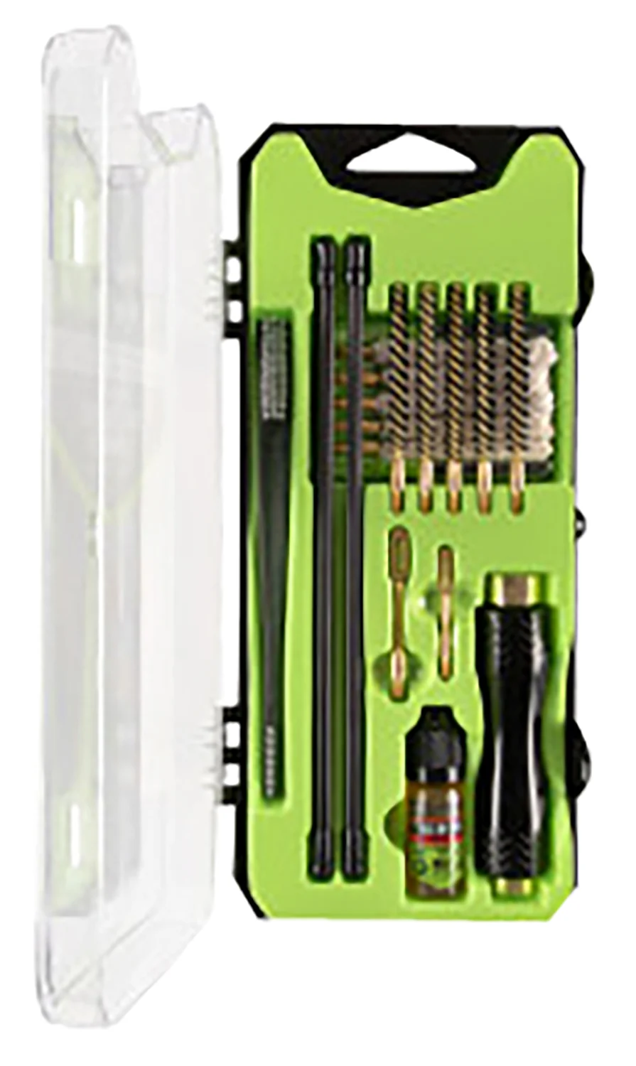 The Breakthrough Clean Vision Series Rifle Cleaning Kit offers you everything you need to ensure a thorough clean. Its plastic tray keeps all the various pieces of the kit organized neatly inside a durable case that acts like a mini toolbox. These cleaning kits come with cleaning rod sections, various hard bristle nylon brushes, jags, patch holders, and cotton patches. Also included is a durable and detachable aluminum handle with knurling for an easy grip and our mini bottle of CLP All-in-One.