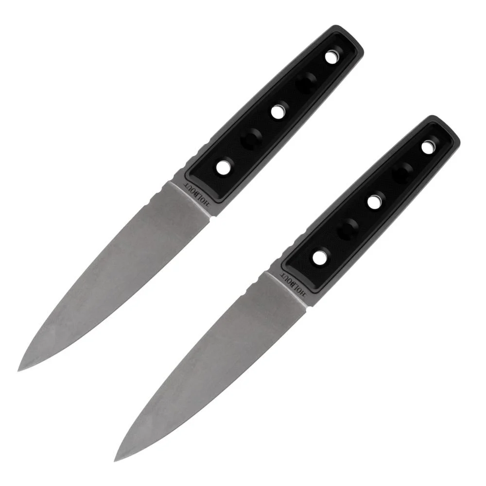 Everyone knows that Stickman loves throwing the Holdout folding knife. He has taken the Holdout folder to the next level by designing this dedicated fixed blade throwing knife. Throwing enthusiasts and professionals alike will appreciate the precision design and durable construction of the new Cold Steel Stickman Holdout. Crafted from high-quality 420 stainless steel the Stickman Holdout offers exceptional durability and corrosion resistance ensuring it withstands the rigors of repeated use with ease whether indoors or out. The 5.8" full-tang blade features a razor-sharp edge that maintains its sharpness throw after throw making it the perfect tool for honing your skills. Add that to ergonomic G-10 handle scales for a comfortably secure grip even in wet or sweaty conditions and you can rest assured you’ll exert maximum control accuracy and precision every time. With its exceptional craftsmanship superior materials and unparalleled performance the Stickman Holdout will quickly become your go-to throwing knife for years to come. Includes two knives and a woven nylon sheath.