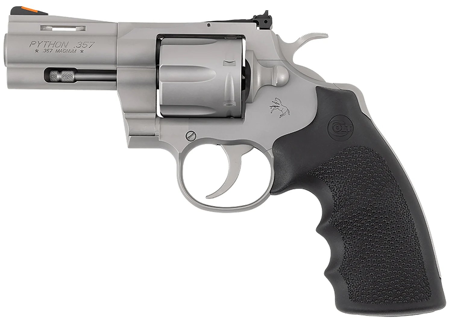 Colt Mfg PYTHONSM3RTS Python 357 Mag/38 Special 6 Shot 3″ Matte Stainless Steel Recessed Target Vent Rib Barrel, Cylinder & Frame, Black Rubber Grip, Exposed Hammer