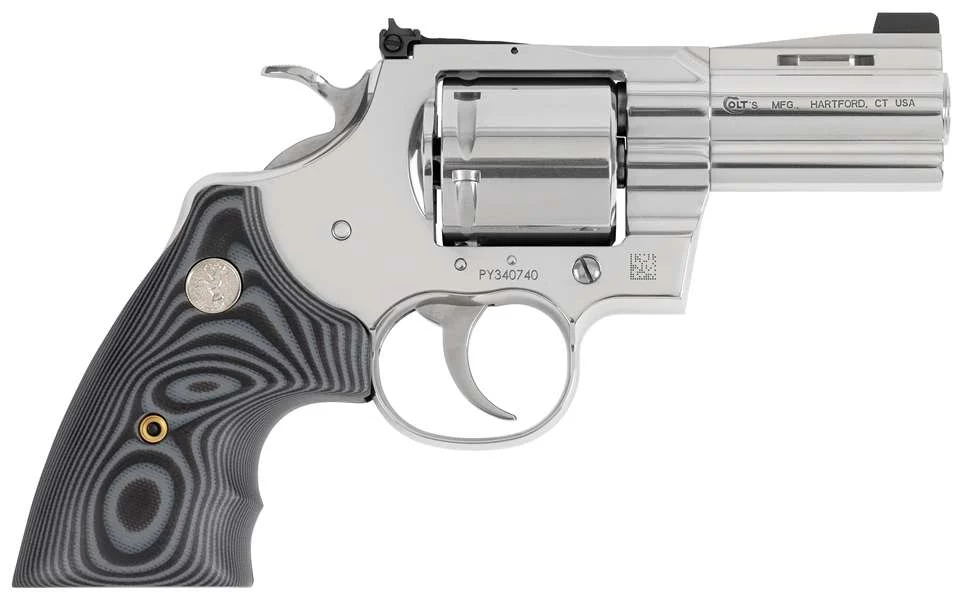 Colt’s Manufacturing Python Combat Elite, Double Action, Steel Frame Revolver, 357 Magnum, 3″ Barrel, Stainless Steel Finish, Silver, G10 Grips, Fixed Front Night Sight, 6 Rounds PYTHON-SP3NS
