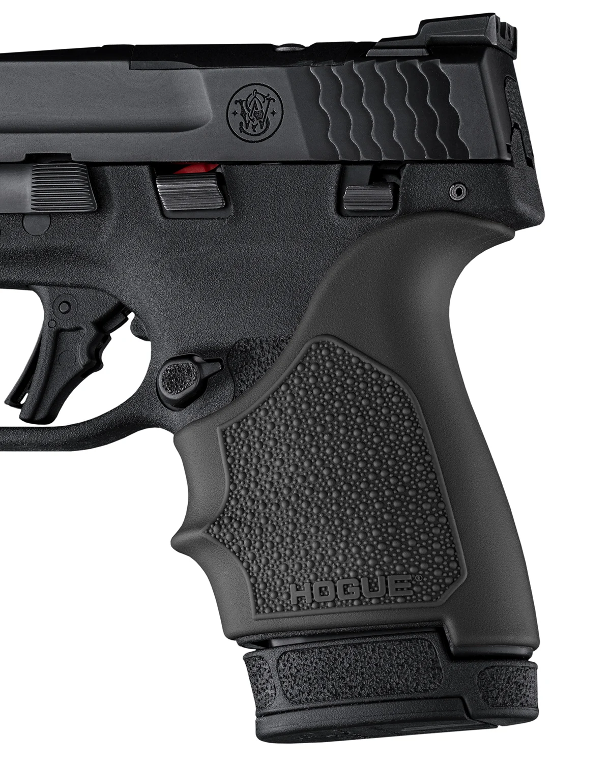Gentle palm swells fit comfortably in hand. Top finger groove naturally positions fingers for optimal grip. Textured with Hogue’s famous Cobblestone pattern for increased comfort and grip. Beavertail cushions the hand on recoil and offers increased hand comfort higher on the grip. Made from long lasting durable thermoplastic elastomer that ages gracefully for years of service. Designed for a tight and secure fit engaging with the texture and contours of the firearm’s frame