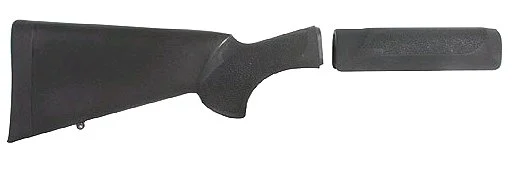 Hogue Stocks come standard with aluminum pillar bedding. These pillars, inserted at critical action mounting bolt locations, guarantee an accurate, rock-solid action fit that will not shoot loose. The OverMolded shotgun stocks are molded from a super tough fiberglass reinforced polymer, assuring stability and accuracy. The grip and entire forend are overmolded for outstanding handling characteristics. These superior stocks are durable, weatherproof and non-slip. Hogue shotgun stocks are super comfortable with a standard length of pull, ambidextrous ergonomic palm swell and a soft recoil cushioning buttpad. This combo kit features a stock and forend with a black finish. It is compatible with Remington 870 12 gauge.