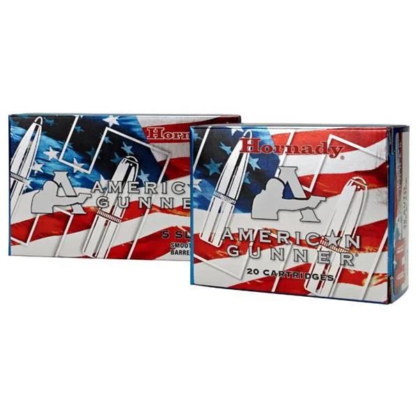 Designed for smooth bore barrels Hornady American Gunner Reduced Recoil Slugs feature a 1-ounce lead alloy projectile. A compression style wad softens recoil protects the slug at ignition and helps seal the bore for consistent velocity.