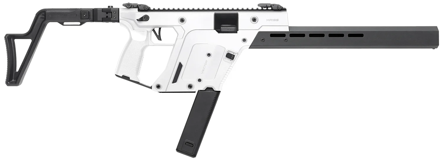 Tailored for recreational use and competition in pistol caliber carbine divisions, the KRISS Vector Gen3 CRB is the most accessible model with a 16″ rifle length barrel and is compliant in most states. The upper and lower housings have been reimagined and enhanced for adaptability. The CRB comes equipped with a refreshed barrel shroud with M-LOK mounting points. The CRB is fed with full size Glock magazines, ensuring seamless interchangeability for users familiar with Glock-style mags. Features interchangeable AR15/M16 pistol grip; Kriss adjustable folding stock; Glock magazine compatible; 5 M-LOK slot on each side and 6 slots on the bottom; ambidextrous reversible magazine release and 4-Pin tool less disassembly. Includes magazine, cleaning kit, cable lock and manual.