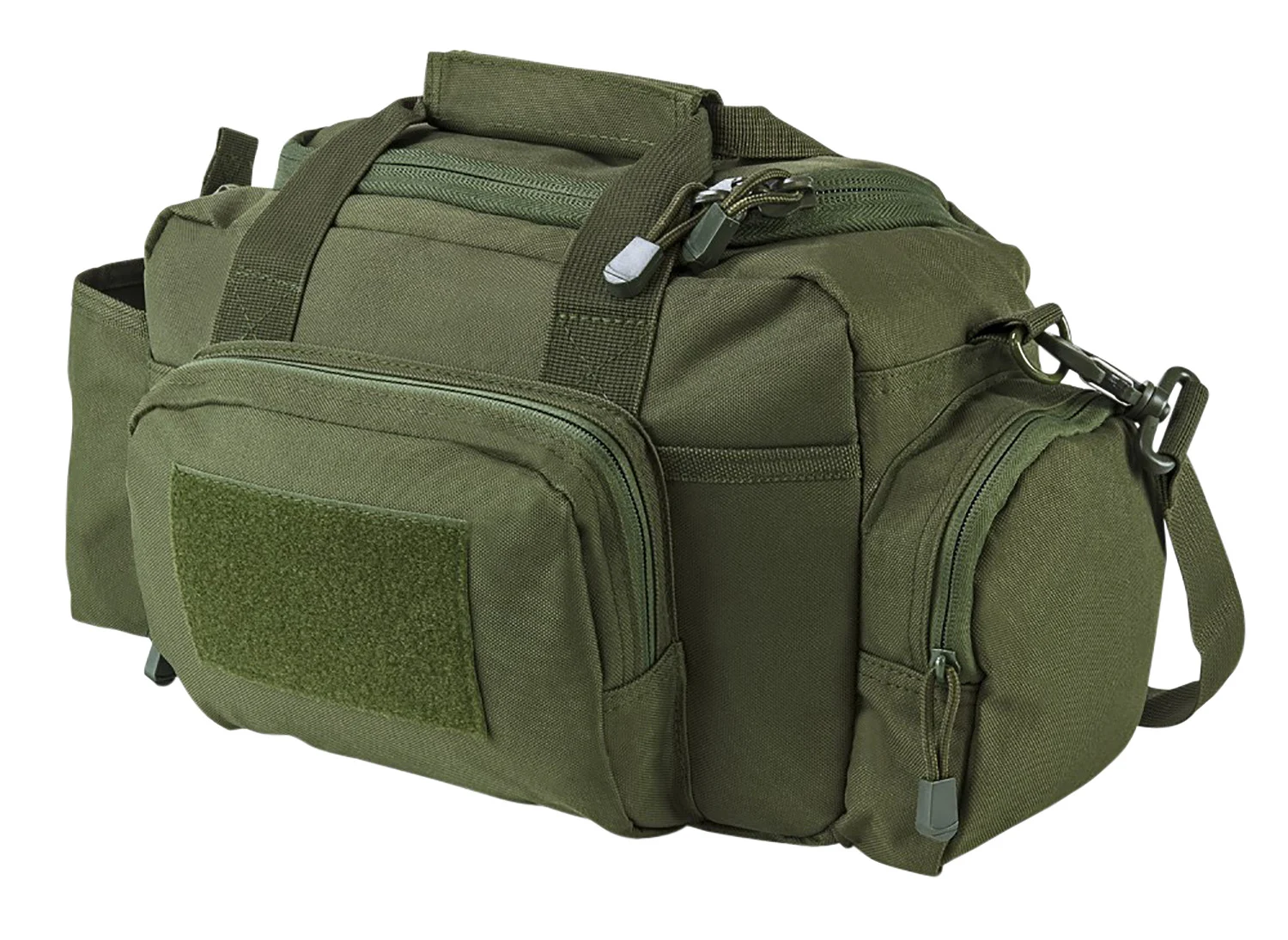 This bag is a smaller range bag that is compact while being able to hold a lot of gear. The range bag will easily carry a couple pistols, holster, several magazines & pouches, ammo, eye & hearing protection, and other essential range gear. This bag has a large top opening zippered lid for easy access to your gear with heavy duty zippers. It also comes with metal zippers with metal loops for attaching a small pad lock (not included) to secure your gear and for those jurisdictions that require a locked container for your firearm when being transported to a range.