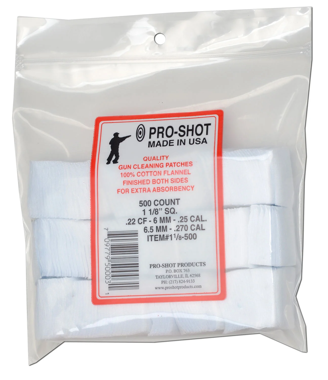 Pro-Shot 118500 Cleaning Patches .22/ .270 Cal 1.125″ Square Cotton Flannel 500 Pack