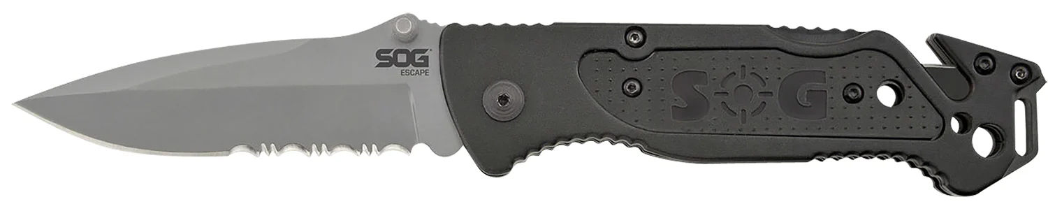 S.O.G SOG-FF24-CP Escape 3.40″ Folding Clip Point Part Serrated Bead Blasted 9Cr18MoV SS Blade Black Anodized Aluminum Handle Includes Belt Clip