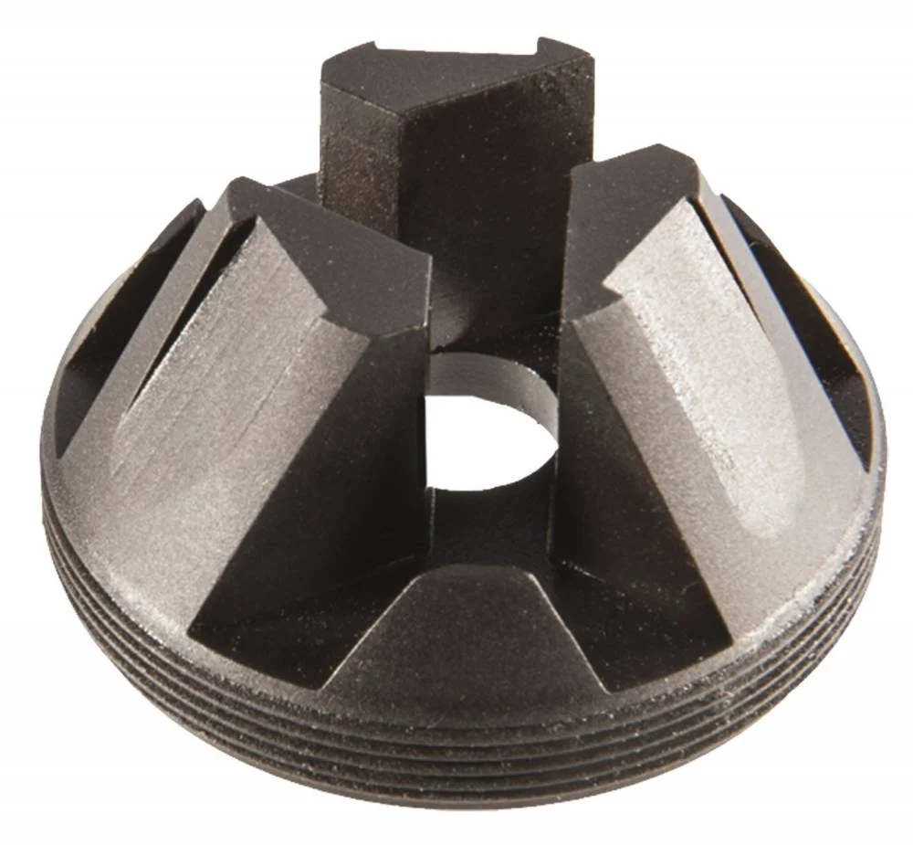 This front cap accessory replaces the standard, flat, Saker front cap. The Trifecta design flash hider effectively suppresses excess flash when using the Saker on SBRs or fully-automatic firearms.