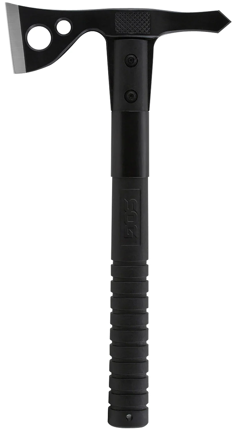 The SOG FastHawk is faster, lighter, more agile and easier to carry than its sibling the Tactical Tomahawk. It is powerful, versatile and functional. A tool used for chopping, breaking, cutting, hammering, piercing, digging, prying, pounding shaving, notching, opening and throwing. The 420 stainless steel head is mounted to the ballistic polymer handle with heavy-duty bolts and a steel ferrule to insure the strongest integrity. Side hammer checkering insures precision placement when swinging. Carried in a nylon sheath that can be mounted to belt, backpack or gear.