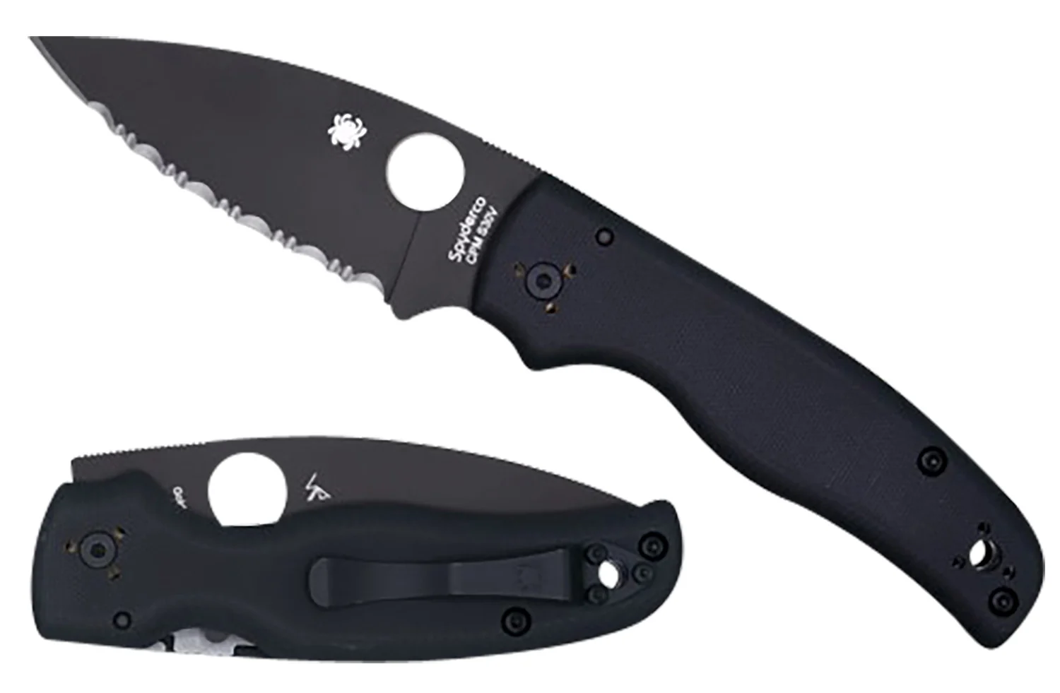 Spyderco C229GSBK Shaman 3.58″ Folding Serrated Black DLC CPM S30V SS Blade/Black Textured G10 Handle Includes Pocket Clip