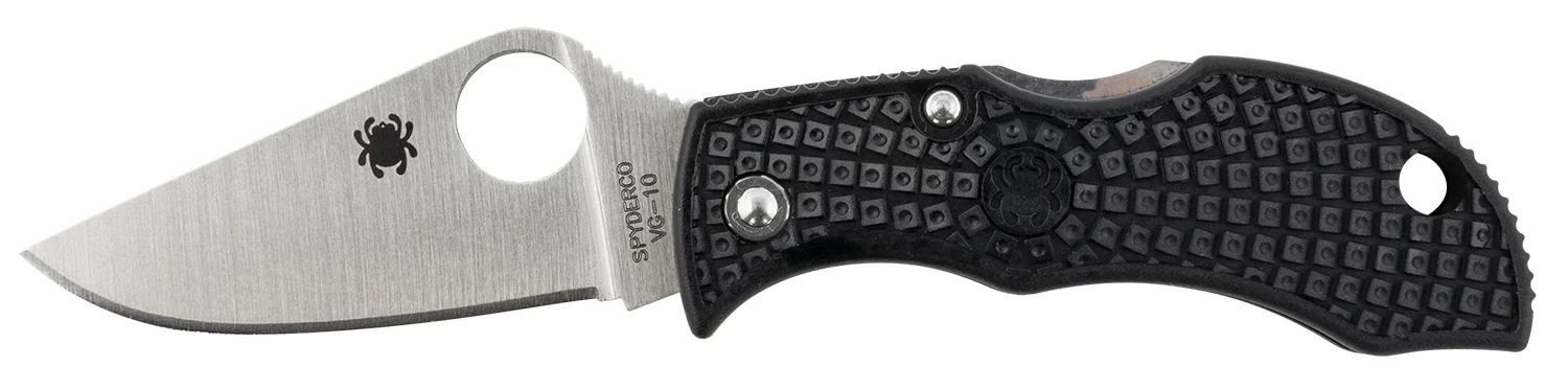 Spyderco MBKP Manbug 1.95″ Folding Plain Stonewashed VG-10 SS Blade, Black FRN Handle