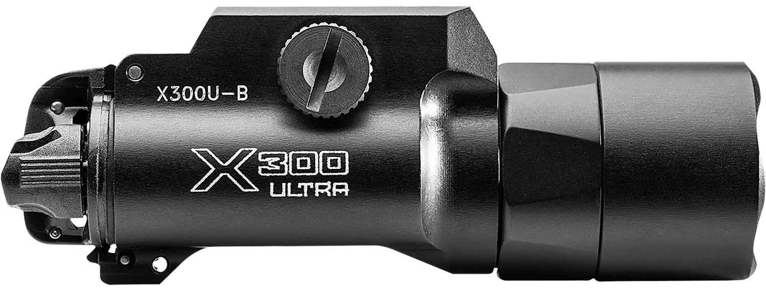 Trust The Gold Standard In Weapon Lights. Popular with law enforcement and military operators around the world, our best-selling Weapon Light now delivers a stunning 1,000 lumens of LED-generated output. Focused by a precision TIR lens, it creates a far-reaching high-intensity beam with a larger center spot plus surrounding spill light ideal for close- to medium-range engagements. You can count on the X300U-B to help you positively identify threats at significant distances while temporarily impairing your adversarys vision. It also provides extensive peripheral illumination for maintaining situational awareness. Ambidextrous switching provides one-finger control of momentary-on or constant-on activation. Its rugged, aerospace aluminum body is Mil-Spec hard anodized for scratch and corrosion resistance and sealed to make it weatherproof. Its also IPX7 waterproof to 1 meter for 30 minutes. The X300U-B delivers a standard of excellence you can trust.