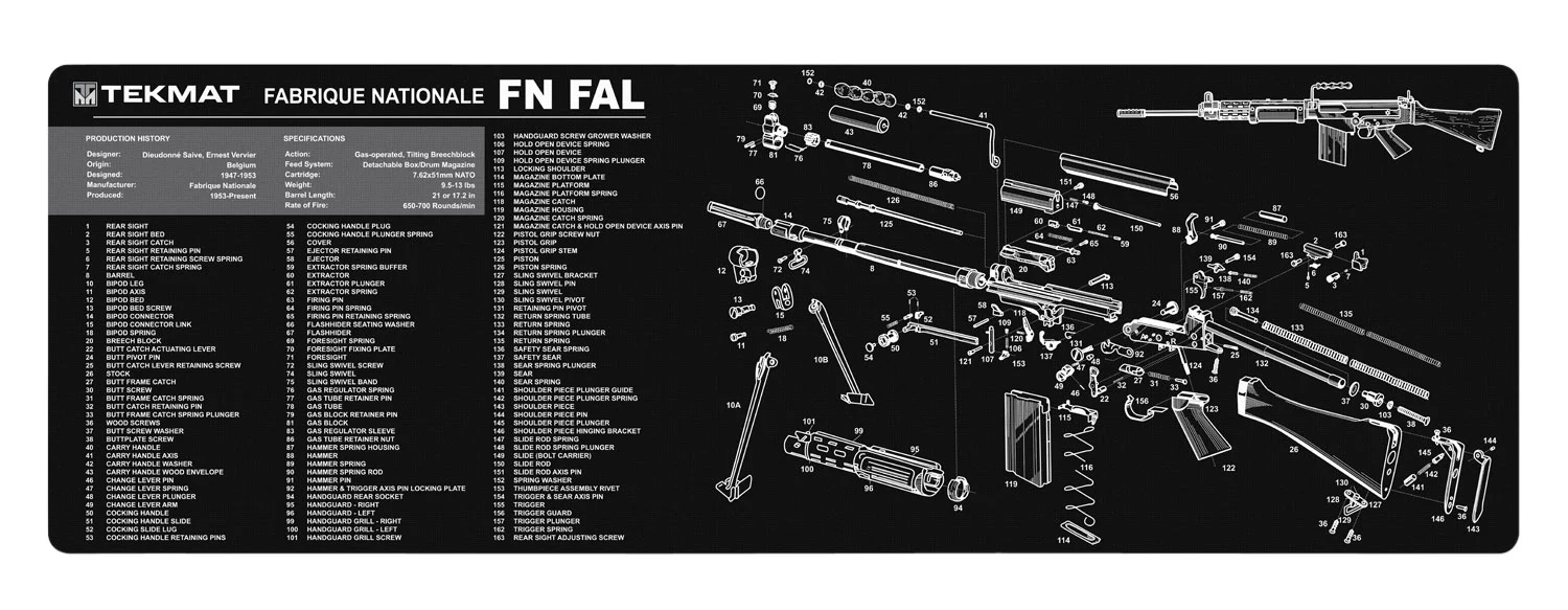 Looking for the best prices on TekMat TEKR36FNFAL FN-FAL Cleaning Mat Black/White Rubber 12″x36″ FN-FAL Parts Diagram by BECK TEK, LLC (TEKMAT)? Governors Gun Club proudly serves Kennesaw with unbeatable pricing, expert service, and exclusive rewards.