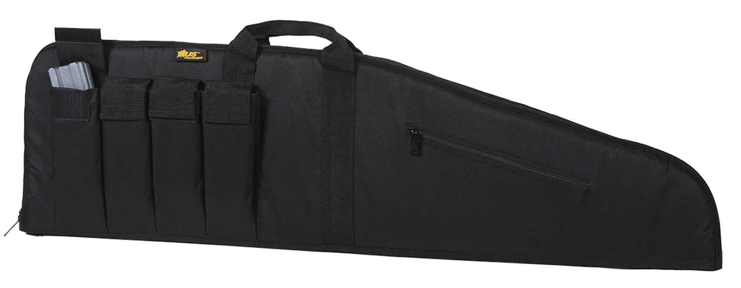 US PeaceKeeper MSR (Modern Sporting Rifle) cases are designed specifically to protect your AR-style or other Modern Sporting Rifle during transport. Each case offers two inches of padding overall and is double-stitched. The handles wrap entirely around the case so they will not pull out, regardless of weight. The external zippered pocket contains four individual magazine pouches, and the inside compartment is lined with brushed Tricot to wick away moisture from your MSR. It has a sling strap for easy carry and a double zipper for locking capability. This model is 45″ long and weighs 2.82 lbs. Includes Lifetime Warranty, 2″ brushed tricot liner, sling strap & double zipper for locking capability.